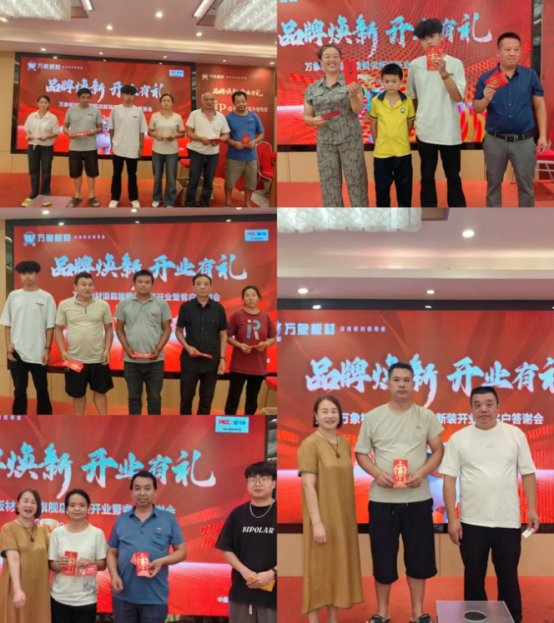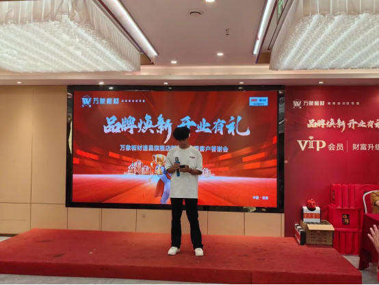 剪彩儀式后開展了答謝會(huì)。旺德府家居集團(tuán)總裁助理毛寧先生擔(dān)任本次會(huì)議主持人,并向與萬象板材品牌攜手奮進(jìn)的合作伙伴們表達(dá)了衷心的感謝。