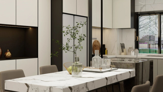 廚房柜體的設(shè)計是“美學(xué)表達(dá)”與“功能落地”的結(jié)合體,既以簡約高級的視覺呈現(xiàn)契合現(xiàn)代家居審美,又以精細(xì)化的收納與布局,為日常烹飪、用餐提供高效且舒適的體驗,最終讓餐廚空間成為家的 “質(zhì)感生活容器”。