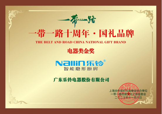 在上海合作組織元首峰會協辦單位,和一帶一路絲路文化之旅組委會等機構共同發起的“一帶一路十周年·國禮品牌高鐵專列”活動中,樂鈴廚電成功入選“一帶一路十周年·國禮品牌”,以民族品牌身份,將國禮品質傳送至全世界。