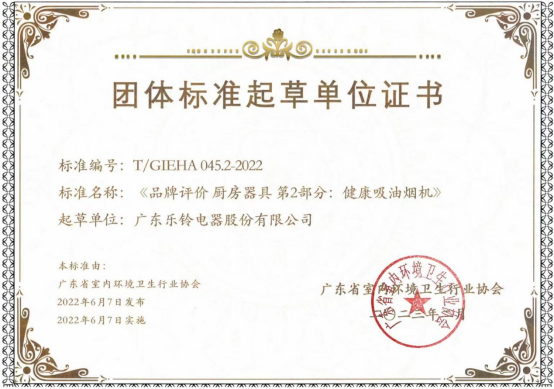 近年來,樂鈴廚電根據鐘南山院士提出的廚房油煙污染問題,不斷探尋升級健康烹飪全品類產品,用技術守護萬千家庭健康。在試錯和投入中,樂鈴將“大吸力”與“不用洗”技術有機融合,實現廚電行業的一重大突破!樂鈴憑借在廚房電器領域內吸油煙機和集成灶對廚房油煙難關的攻克,參與《健康吸油煙機》、《健康集成灶》等團體標準的制定,推動行業的健康升級,守護億萬家庭的呼吸健康。