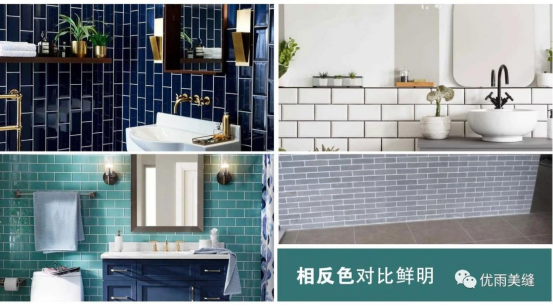 如果想要達(dá)到一種震撼的效果,那么使用對(duì)比鮮明的反差色是必需的。比如冷色與暖色、亮色與暗色,應(yīng)用到美縫上就如:黑磚白縫、黃磚藍(lán)縫等,強(qiáng)烈的反差色會(huì)特別刺激眼球,增強(qiáng)整體空間的裝飾效果,使空間更加美觀。相反色主要用于展示廳、商業(yè)場(chǎng)所。