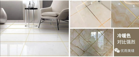 美縫劑冷暖色搭配是指在鋪貼材料的縫隙中填充冷色系和暖色系相互搭配的美縫劑。如果瓷磚偏黃、偏橙,可以選用金色、黃色等偏暖色系的美縫劑;如果瓷磚偏青、偏灰,可以選用銀色、灰色等偏冷色系的美縫劑。暖色系讓空間變得溫暖、舒適,而冷色系使空間變得冷靜、清新。冷暖色搭配產(chǎn)生強(qiáng)烈的對(duì)比效果,使鋪貼材料更加突出,適用于各種室內(nèi)空間。