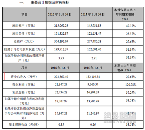 2016年1-6月,歐普照明實現營業收入22.34億元,較上年同期增長22.65%;實現歸屬于母公司股東的凈利潤1.8億元,較上年同期增長33.58%。