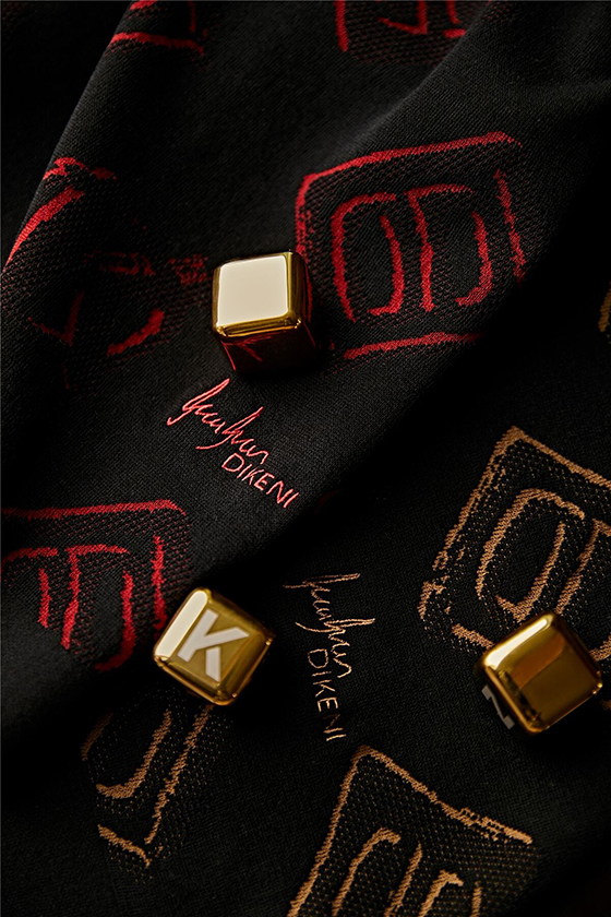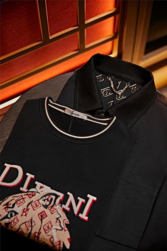 他了解紅色在中國的新年里“紅紅火火”的吉祥寓意,在第一款針織短袖上為DIKENI迪柯尼原Monogram的黑色加上強(qiáng)烈耀眼的紅色,利用更具有沖擊感的顏色組合實(shí)現(xiàn)設(shè)計(jì)張力,為新春時(shí)尚造型加分。
