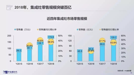 此外,近年來消費者對中高端集成廚電產品興趣濃厚,集成化逐漸成為廚電行業(yè)發(fā)展的新趨勢。集成灶整體集約的設計理念與消費者對現代家居在功能、審美方面的訴求十分契合,預期這種消費訴求將慢慢延伸到全國。據中怡康數據顯示,2018年集成灶行業(yè)規(guī)模突破百億,零售額同比增長率為43.9%,前瞻產業(yè)研究院也預測2020年集成灶銷售額將持續(xù)突破至三百億以上,集成灶市場未來大有可為!在此行業(yè)背景下,紅日廚衛(wèi)自主研發(fā)的紅外線集成灶,在集成灶的基礎上兼具了紅外線灶的優(yōu)點,市場前景必定更加廣闊。