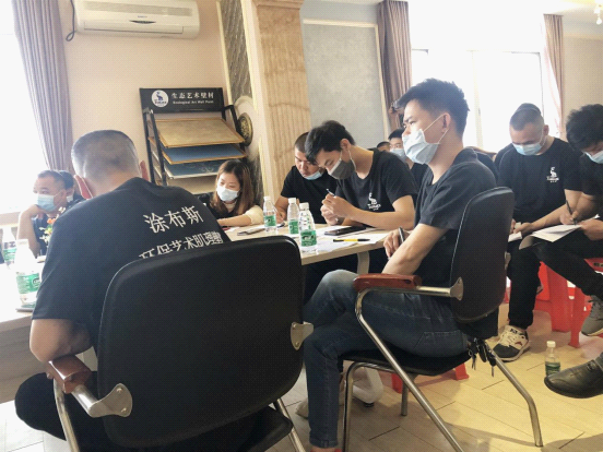理論先行,實踐也要落地。會議期間,為了讓代理商互相學習,鞏固產品理論知識,涂布斯特別加入了藝術涂料工藝技術培訓課,共12項內容,對數款產品進行了工藝展示。同樣的產品,批、旋、壓、轉,使用不一樣的工藝,做出來的效果天差地別,再次讓大家切實體會到藝術涂料的魅力。