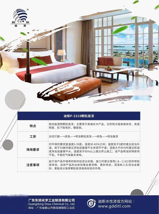 迪斯憑借完備的生產(chǎn)設(shè)施、精密的生產(chǎn)儀器、高超的生產(chǎn)工藝等硬實(shí)力,嚴(yán)格把控產(chǎn)品的生產(chǎn)流程,竭盡全力做到精益求精,盡善盡美。也正是這份嚴(yán)苛與執(zhí)著,讓“迪斯P-3319顆粒底漆”具有了極高的填充性、優(yōu)異的硬度表現(xiàn)力、極好的抗下陷功能、無可挑剔的通透度、出色的凈味效果等眾多完美優(yōu)勢(shì)。值得一提的是,“迪斯P-3319顆粒底漆”一經(jīng)推出,便吸引了眾人的目光,一躍成為了頂級(jí)實(shí)木涂裝領(lǐng)域的“新寵”!