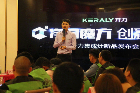 會上,集成灶事業部張昌旗先生圍繞“C3凈廚魔方”集成灶新品展開精彩演講,深入剖析了“攏、隔、渦、排”四大核心技術及“油氣電分離”三重獨立安全防護的作用及價值。此外,張總更提到:開力將在新的一年,攜手經銷商致力打造標準旗艦店、體驗店與專賣區,通過標準的VI形象與科學的運營模式,打造強勢終端。