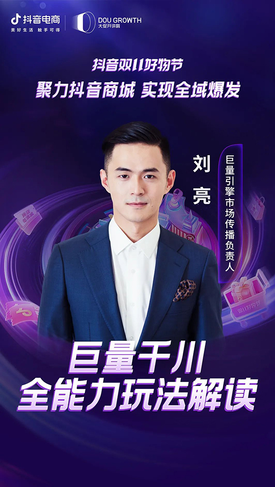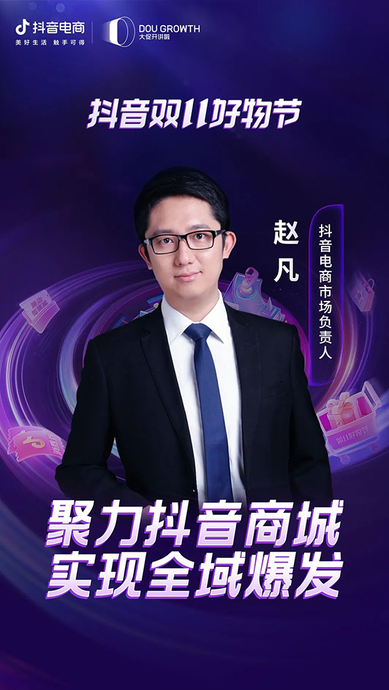 面對行業關注的諸多焦點,在本次招商會,抖音電商市場負責人趙凡將率先帶來以「聚力抖音商城,實現全域爆發」為主題的分享。結合雙11期間的營商環境和當前抖音電商業務數據,他將闡釋抖音電商對經營提升的價值;同時,從實例出發,講解如何做好抖音電商內容場、中心場的協同,助力商家們“順勢而為”。