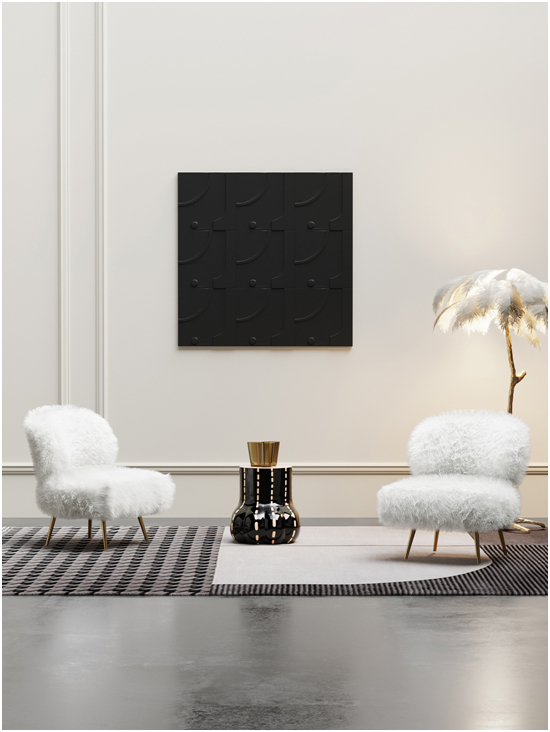 洛品有家參考安妮女王時期最具有代表性的安樂椅,并在此基礎(chǔ)上作出創(chuàng)新。這款休閑椅靠背與扶手相連,采用極繁主義的黑白印花,體現(xiàn)出洛品有家品牌深處的“輕柔嫵媚”。輕巧的腿,高高的靠背,兩側(cè)填翼并向前略略延伸,如女性的劉海和發(fā)冠,整體流暢舒適優(yōu)雅。