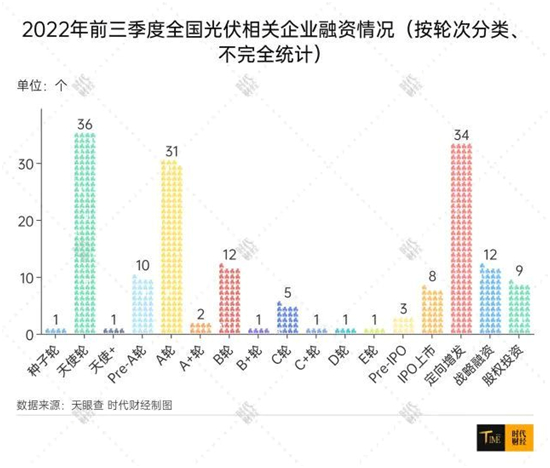 據時代財經不完全統計,2022年前三季度共有160家與光伏相關的企業進行了168次融資,多家光伏企業融資兩次。