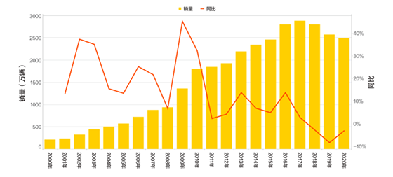 中國汽車市場歷年銷量變化趨勢