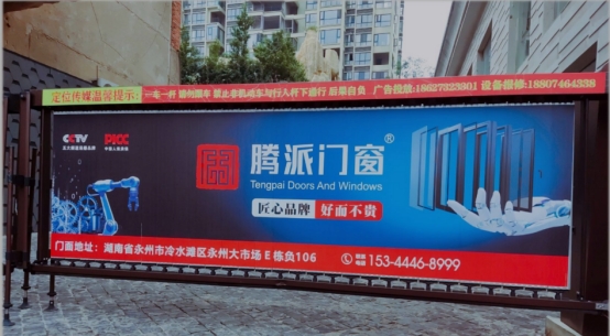 騰派門窗永州市專賣店結合自身產品優勢,做好用戶精準畫像,將核心廣告打入客戶心理。專賣店精準投放廣告,將主要廣告投入到人流密集處、潛在客戶處、優勢點位處。將廣告放在小區進出口,發揮核心區域的最大功效,將騰派門窗的品牌與口號深入人心,擴大專賣店知名度與影響力,讓永州市專賣店成為湖南省乃至全國一流門店。