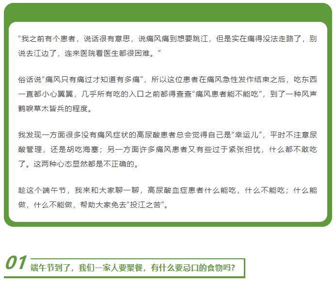 所以高尿酸血癥患者可以吃粽子,但嘗嘗鮮即可,不要多吃,如果要吃的話,也可以考慮別沾白糖。