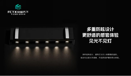 倘若在設計燈光時,燈具沒做防眩設計,發出的外溢光、雜光、眩光,會非常刺眼,給人生理帶來不適感。鋒磁天下筒射系列采用深杯結構設計,增加燈具光源與發光口的距離,避免燈光對人體眼睛的直射,有效減少直接眩光。另外結合專業級光學透鏡,過濾雜光,使光線變得柔和不刺眼,開啟舒適護眼的用光體驗。