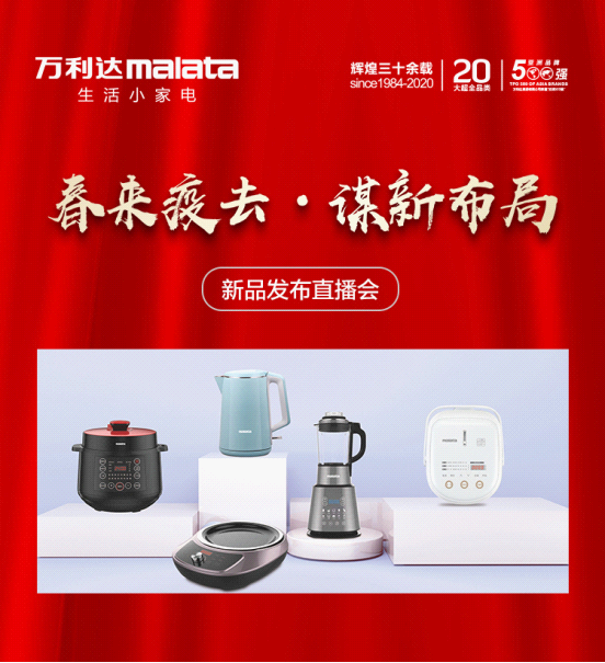 在“民以食為天”的社會文化背景下,我國廚房小家電市場尤其火熱,以“體量輕盈”、“設計精巧”、“顏值美觀”為主要賣點的小家電產品常與提升生活品質、增添居家幸福感等關鍵詞緊密聯系一起。萬利達集團旗下的萬利達malata小家電品牌不斷進行科技創新,致力于為萬千消費者帶來充滿便捷樂趣的美好生活。2020年4月13日晚上7:30,萬利達小家電事業部如期而至——開展“春來疫去·謀新布局”新品發布直播會,全國經銷商、代理商一同進入線上直播房間,共襄盛宴!