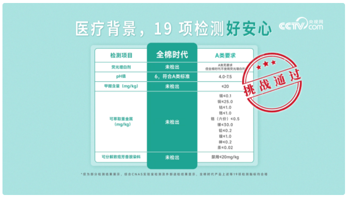 央視網“超級爸媽考察團”現場進行了隨機抽檢,結果顯示,19項嚴苛檢測(含甲醛、熒光、重金屬等)全部合格,不僅達到A類嬰幼兒用品標準,更嚴于國標,新生兒也能安心使用。