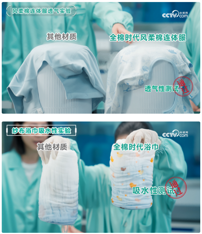 在央視網《寶貝優選》“超級爸媽考察團”的嚴格檢驗下,全棉時代嬰童衣物用“好棉、安心、好舒服”鑄就父母安心的高標準,依托醫療背景和品質基因,從一粒棉花種子開始到全品類成品,構建全流程的保障。