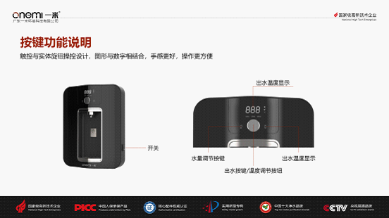 一米秉承“純凈有溫度,健康更享受”的生活理念,歷時多年的設計開發,隆重推出劃時代的免安裝凈化加熱一體機OM-GX05,兼具顏值與實用性,贏得了業界廣泛的贊譽。