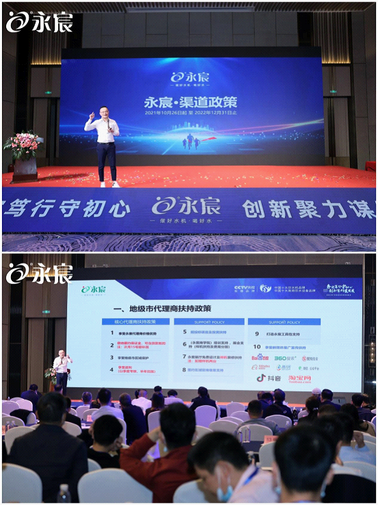 接下來,永宸商學院老師何燕玲先生發表《永宸渠道政策講解》報告。他指出,永宸家人們要準確把握2021年市場營銷政策導向,學深悟透、入腦入心,結合實際抓好市場工作,確保政策落地執行;全體經銷商要同心同行,通過“樹品牌·夯基礎”兩項工作,持續夯實市場基礎,持續強化消費者培育,為永宸飲水更高質量發展打下堅實基礎。
