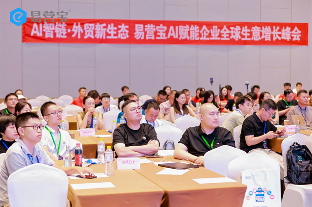 2025 年 7 月 11 日,易營寶“AI智鏈·外貿(mào)新生態(tài)——AI賦能企業(yè)全球生意增長峰會”于2025年7月11日在青島紅樹林酒店會議會展中心圓滿舉辦。本次峰會匯聚了來自互聯(lián)網(wǎng)企業(yè)、信息技術公司等外貿(mào)服務商的決策者及行業(yè)專家,旨在探討 AI 技術與外貿(mào)出海各環(huán)節(jié)的融合應用,助力外貿(mào)服務商提升服務能力,推動外貿(mào)行業(yè)智能化轉型。