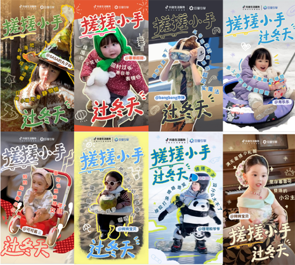 抖音精準(zhǔn)挖掘冬日親子家庭的核心需求,捕捉站內(nèi)「精致生活」「悠閑避寒」「親近自然」「室內(nèi)撒歡」四大親子生活趨勢,結(jié)合平臺(tái)創(chuàng)意風(fēng)格、冬季節(jié)點(diǎn)特性與童趣心理,打造“搓搓小手過冬天”親子垂類IP話題,開啟線上“云遛娃”行動(dòng)。