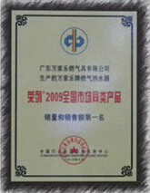 2009年,繼當選第二屆中國五金制品協會燃氣具分會理事長單位之后,萬家樂被推選為第四屆理事長單位;同年,萬家樂獲得了人民日報社、人民網頒發的“綠色標桿企業” 稱號,成為燃氣具行業首家獲得該榮譽的企業。2010年,被評為“廣東家電最具全國競爭力十大品牌”。2011年國家信息統計中心數據表明,2010年萬家樂燃氣熱水器銷量和銷售額再次排名全國榜首。萬家樂還入選“改革開放三十年廣東標桿企業”(2008年)、“2009年中國輕工行業十強企業”,2010年被評為“AAAA級標準化良好行為企業”,2007-2010年連續四屆入選“中國廚衛百強”。