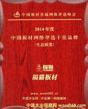 2014年在木業(yè)第一網(wǎng)絡(luò)媒體——中國木業(yè)網(wǎng)舉辦的中國板材首屆網(wǎng)絡(luò)評選中,福貓榮評生態(tài)板十佳品牌。