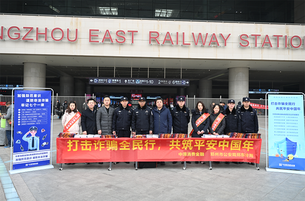 1月15日,鄭州東站西廣場(chǎng)熙熙攘攘,歸鄉(xiāng)的游客背著大包小包,臉上滿帶喜悅,春節(jié)近了。當(dāng)天下午,中原消費(fèi)金融與鄭州市公安局鄭東分局聯(lián)手舉辦的“打擊詐騙全民行,共筑和諧中國(guó)年”宣傳活動(dòng)在鄭州東站、會(huì)展中心等地點(diǎn)同步啟動(dòng)。根據(jù)公安部發(fā)布的58條常見(jiàn)詐騙手法,雙方聯(lián)合制作了預(yù)防詐騙手冊(cè),并印制了春聯(lián)禮包。截至當(dāng)晚,累計(jì)發(fā)放防詐騙宣傳手冊(cè)及春聯(lián)禮包超過(guò)10000件。