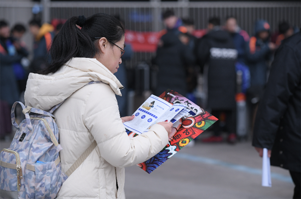 在鄭州東站西廣場(chǎng)大廳出口防詐騙宣傳展板前,站滿了觀看的市民。活動(dòng)現(xiàn)場(chǎng),中原消費(fèi)金融志愿者與鄭東分局干警一起,設(shè)置了反詐劇場(chǎng)、金融講堂、新春互動(dòng)等多個(gè)板塊的宣傳環(huán)節(jié),通俗易懂的預(yù)防詐騙手冊(cè)、新穎的宣傳形式引得市民紛紛駐足,積極互動(dòng)。