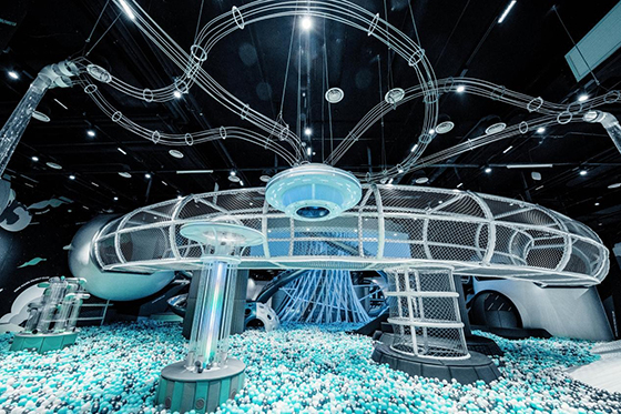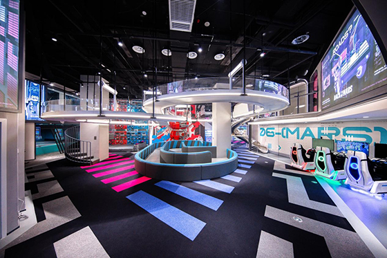 Mini Mars親子樂園始終秉持著“一店一設(shè)計”的品牌理念,但每家門店均圍繞著打造綜合性家庭親子新業(yè)態(tài)而展開。例如,在Mini Mars親子樂園的蘇州門店中,跳脫出位于上海的門店中現(xiàn)代都市、時尚王國等設(shè)計主題,Mini Mars親子樂園蘇州店將年輕一代父母喜愛的賽博太空主題與孩子們熱衷各種新型游玩項目相結(jié)合,隱藏在蘇州地標性建筑內(nèi),父母們體驗豐富的IP故事動線,孩子們也可以與Mini Mars的IP人物在原創(chuàng)游玩設(shè)施中進行互動,兩代人共同感受太空的奇妙。