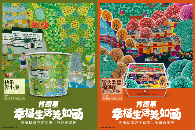 2025年新春將至,肯德基以“幸福生活美如畫”為主題,聯合中國農民畫推出乙巳年新春限定包裝,讓中國農民畫走進大眾視野。這次與新知造文化的合作,不僅是對傳統文化的致敬,也讓非遺藝術在現代商業中煥發了新的生命力。農民畫以其色彩斑斕的畫面與豐富的文化內涵,傳遞出新春祝福,并為消費者帶來獨特的節日體驗。