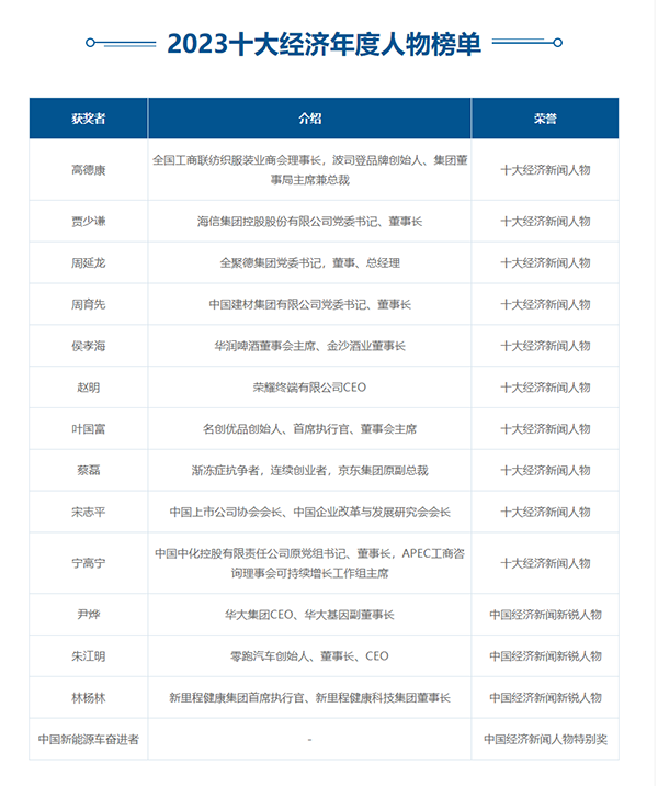 2023十大經(jīng)濟(jì)年度人物榜單