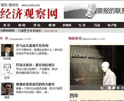 經濟觀察網站首頁:http://www.eeo.com.cn