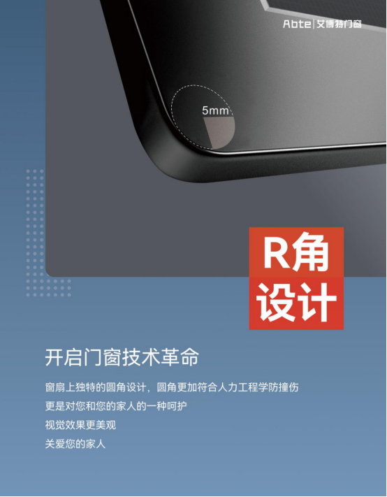 艾博特門窗創(chuàng)新性地采用了圓弧壓線,創(chuàng)造圓弧角門窗。圓弧倒角,不僅僅是一個圓角,更是對您和您的家人的一種呵護(hù)。同時圓弧倒角更顯美觀與自然,在圓形的弧度下,享受極簡之美。簡約設(shè)計,盡顯大氣,簡約的風(fēng)格下,是對生活品質(zhì)的細(xì)致打磨。