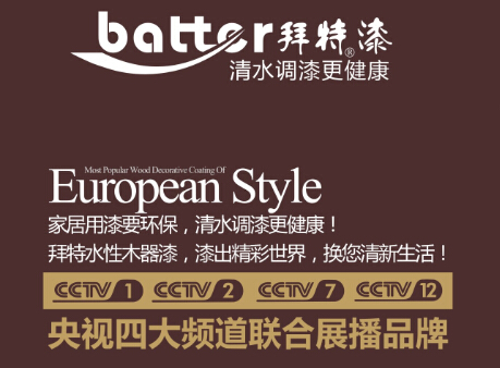 眾所周知,CCTV對于其各個頻道入駐廣告的把關(guān)是非常嚴(yán)的,并不是說誰砸錢砸得多,誰是土豪就讓誰上。很多項目,就算你很有錢,就算你再舍得砸錢,想要上也是不可能。因此,要登上CCTV的廣告,其公司也具有一定的實力和能力,同時還要是項目好的。而對于一般企業(yè)和品牌,想要它主動去報道宣傳那幾乎是不可能。但拜特涂料卻做到了,以中國十大涂料品牌之一的身份在央視的地盤上扎下了根。提起涂料,人們首先躍入腦海的就是油漆,緊接著便是甲醛等有害物質(zhì)。而這也正是為何越來越多的人傾向于選擇使用墻紙來裝修房子的主要因素。但現(xiàn)在,稍微對拜特涂料有一點點了解的人都會毫無顧忌地選擇拜特了。