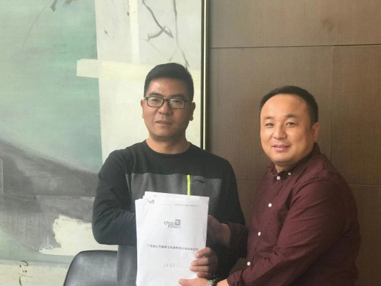 招商部部長李浩偉與溧陽超人葛明俊簽署代理合同