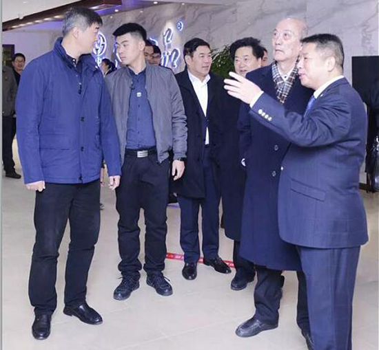 十一屆全國(guó)政協(xié)副主席厲無(wú)畏(右二)到天朝上品酒業(yè)總部考察。
